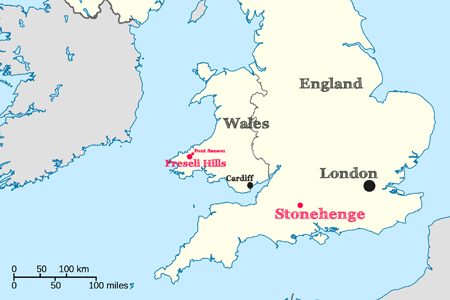 Les résultats des analyses scientifiques indiquent que les roches ont été extraites dans des affleurements de Carn Goedog et Craig-Rhos-y-felin, à environ 225 kilomètres de Stonehenge.